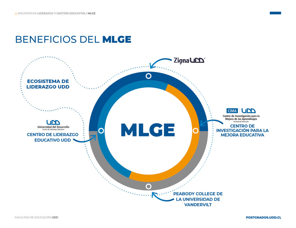 El Magíster en Liderazgo y Gestión Educativa (MLGE) de la UDD forma parte de un ecosistema institucional enfocado en liderazgo educativo, respaldado por centros clave como el Centro de Innovación en Liderazgo Educativo CILED-UDD y el Centro de Investigación para la Mejora Educativa (CIMA). Estos centros impulsan la formación, investigación y actividades profesionales de los estudiantes, fortaleciendo el programa y su impacto educativo.